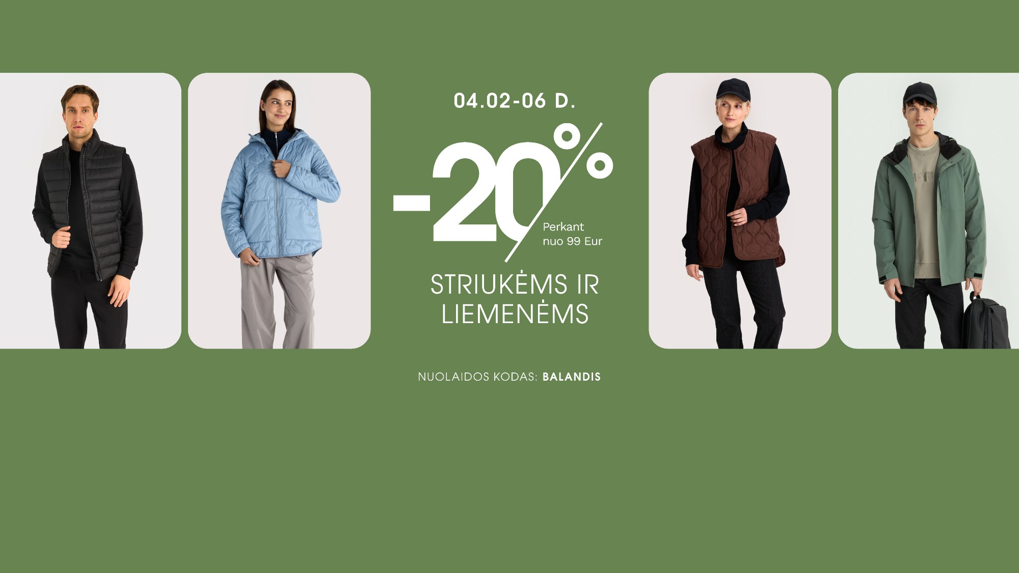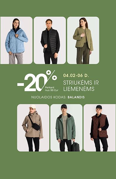 Su kodu: BALANDIS –20% striukėms ir liemenėms perkant nuo 99 Eur. Daugiau informacijos rasite čia >
