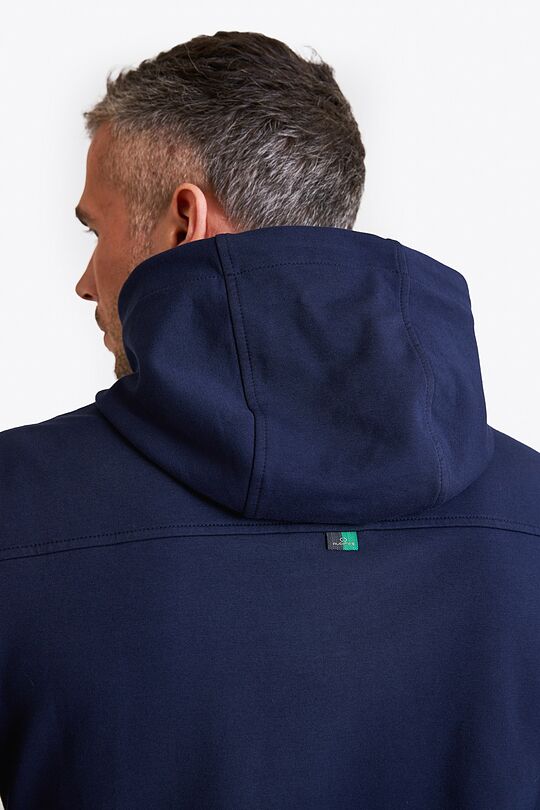 Itin patogus džemperis pagamintas iš šukuotinės medvilnės, kuri yra ypač minkšta, mat iš jos pašalinti trumpesni plaušeliai, paliekant tik ilgiausius. Tokia medvilnė yra švelnesnė, stipresnė, atsparesnė dilimui, labiau blizga nei įprasta medvilnė. Drabužio viduje esantis French Terry mezgimas padeda reguliuoti kūno temperatūrą, yra laidus orui, lengvai išgarina drėgmę. Dėl medžiagos sudėtyje esančio poliesterio šis džemperis yra atsparus trinčiai, beveik nesiglamžo, nesugeria drėgmės.