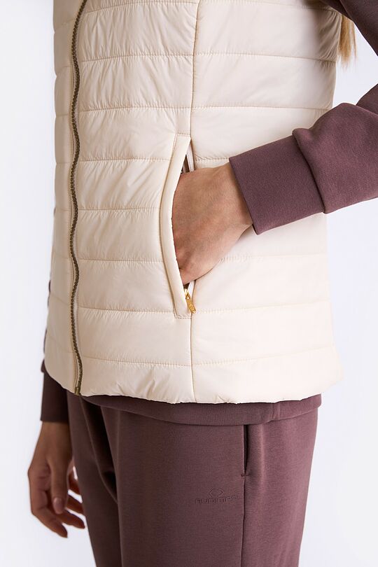 Praktiška ir lengva liemenė su Thermore Evodown pašiltinimu, kuris prilygsta pūkams – efektyviai išlaiko šilumą, yra minkštas, lengvas ir greitai džiūsta. Pašiltinimas pagamintas iš 100 % perdirbtų plastikinių butelių ir sertifikuotas bluesign®, GRS bei OEKO-TEX®.