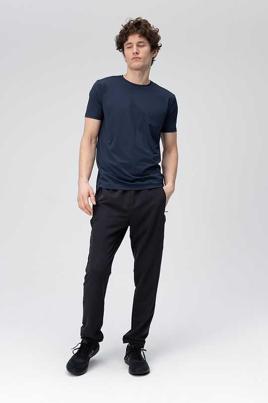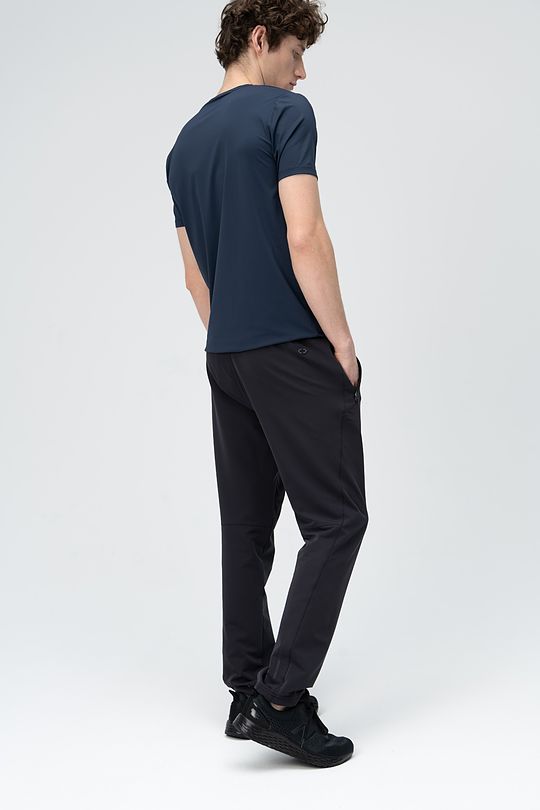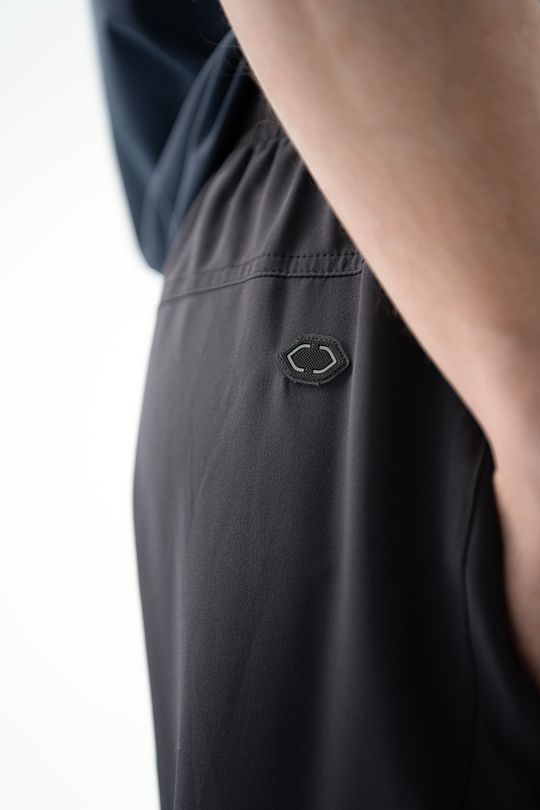 Lengvos medžiagos vyriškos kelnės, pritaikytos bėgiojimui lauke ar apšilimui prieš treniruotę.