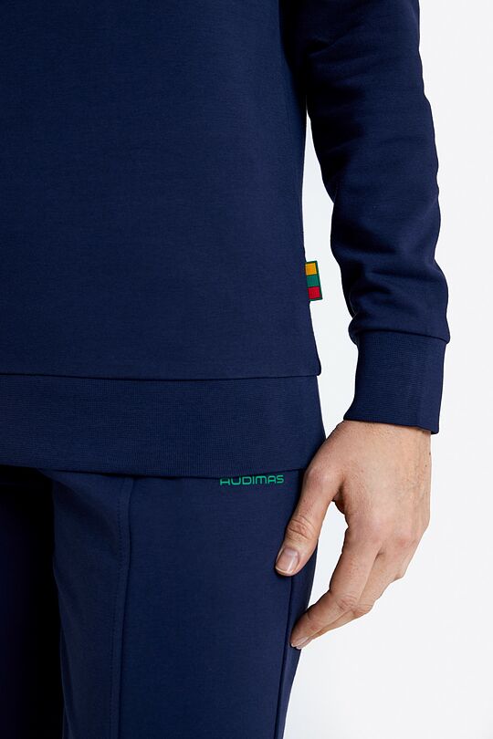 Džemperis su Nacionalinės kolekcijos siuvinėjimu priekinėje dalyje puikiai tiks ir dovanoti kitiems, ir patiems pasipuošti švenčių ar svarbių varžybų metu. Nevaržantis judesių džemperis su viduje esančiu French Terry mezgimu padeda reguliuoti kūno temperatūrą. Medžiaga yra laidi orui, lengvai išgarina drėgmę. Naudojama šukuotinė medvilnė yra ypač minkšta, mat iš jos pašalinti trumpesni plaušeliai, paliekant tik ilgiausius – tokia medvilnė yra švelnesnė, stipresnė, atsparesnė dilimui, labiau blizga.