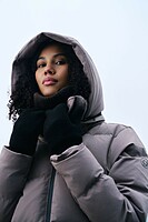 Moteriška parka su gobtuvu, tinkanti kasdienėms kelionėms mieste permainingu oru.