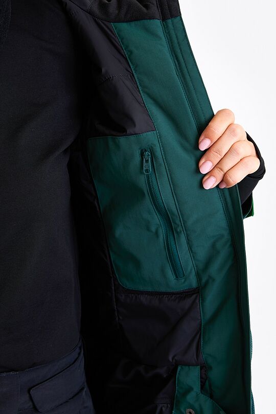 DEFEKTUOTA PREKĖ. Medžiagos paviršiuje lieka dėmės, jei po lietaus/sniego ji natūraliai paliekama džiūti ir vyksta ilgesnis džiūvimo procesas. Dėmės pasišalina striukę išskalbus ir išdžiovinus automatinėje džiovyklėje. Po skalbimo su priemonėmis - rekomenduojama striukę perskalauti vandeniu be papildomų priemonių, pasirinkus skalavimo režimą - tokiu būdu išplaunant perteklinius nešvarumus. Džiovinti automatinėje džiovyklėje – žemoje temperatūroje. Palikus džiūti natūraliai – vyksta ilgesnis džiūvimo /mirkimo procesas, kuris išprovokuoja dėmių atsiradimą.