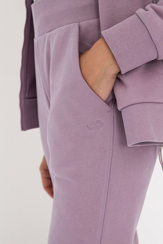 Siaurėjančio silueto kelnės aktyviam laisvalaikiui ir kasdieniam komfortui. Švelni šukuotinė medvilnė ir French Terry mezgimo vidus leidžia odai kvėpuoti, efektyviai išgarina drėgmę ir padeda palaikyti optimalią kūno temperatūrą.