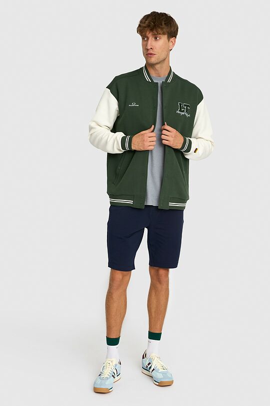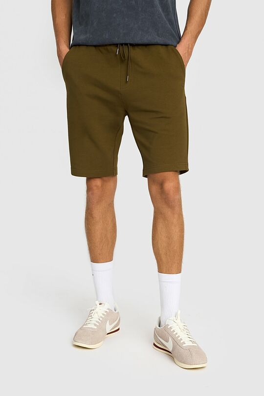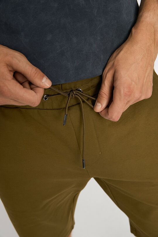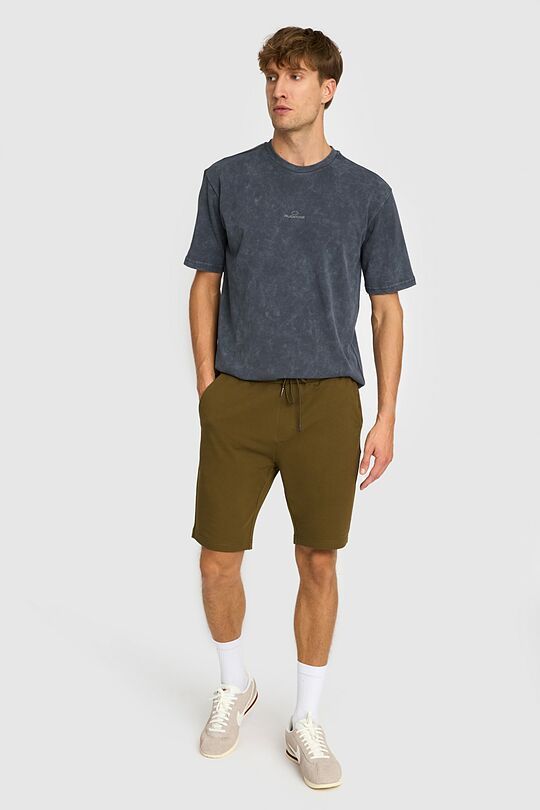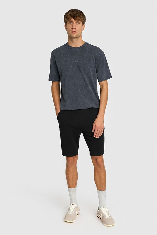 Reguliaraus silueto tamprūs šortai pasiūti iš šukuotinės medvilnės ir elastano derinio, užtikrinančio komfortą, patvarumą ir judėjimo laisvę. French Terry mezgimas padeda reguliuoti kūno temperatūrą – jis yra laidus orui ir greičiau išgarina drėgmę nei šiaušti paviršiai. Elastanas suteikia šortams tamprumo, mažina glamžymąsi ir palengvina priežiūrą.
