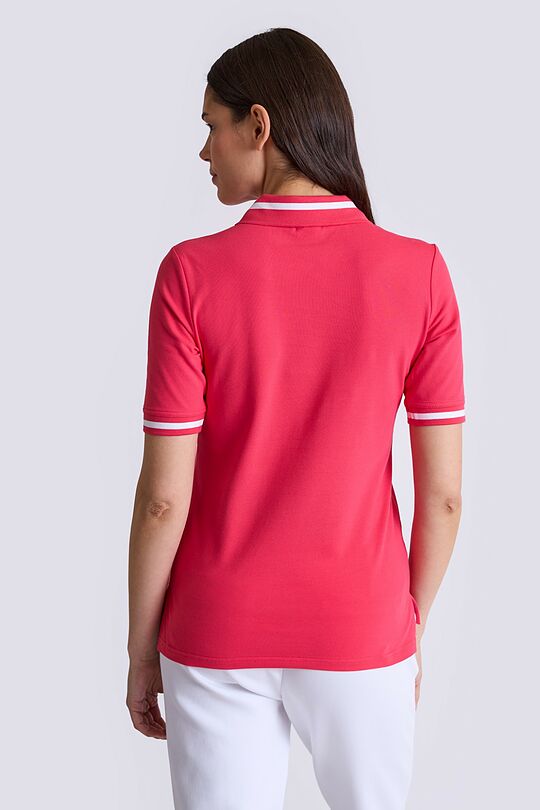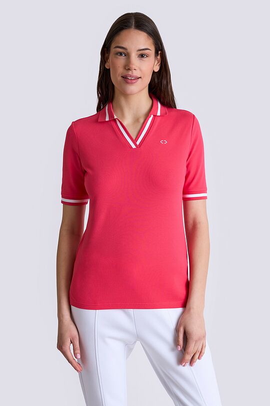 V formos iškirptės polo marškinėliai, pagaminti iš išskirtinio pikė mezgimo medžiagos, kuri suteikia tekstūrinę išvaizdą ir užtikrina gerą oro pralaidumą.